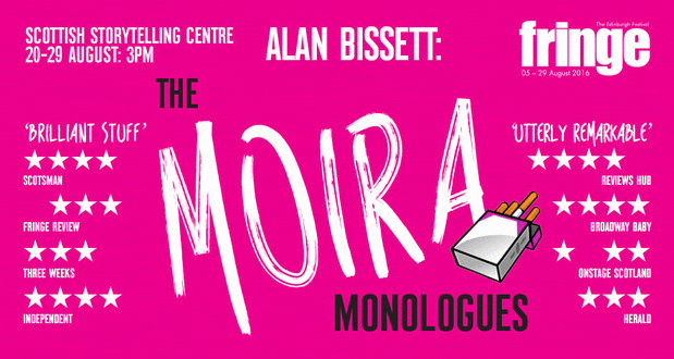 I’m on a wee roll! My ‘one-woman show’ The Moira Monologues sold out its run at the Edinburgh Fringe in August, my new play about Pink Floyd, One Thinks of it all as a Dream, has just done the same in Glasgow, Edinburgh and Aberdeen, off the back of excellent reviews, and now, as a nice one-off, I’m bringing Moira back for a night at the Pentlands Book Festival, Edinburgh, on Nov 11th. So if you didn’t manage to catch Moira during her Fringe run, now’s your chance. Tickets available here.